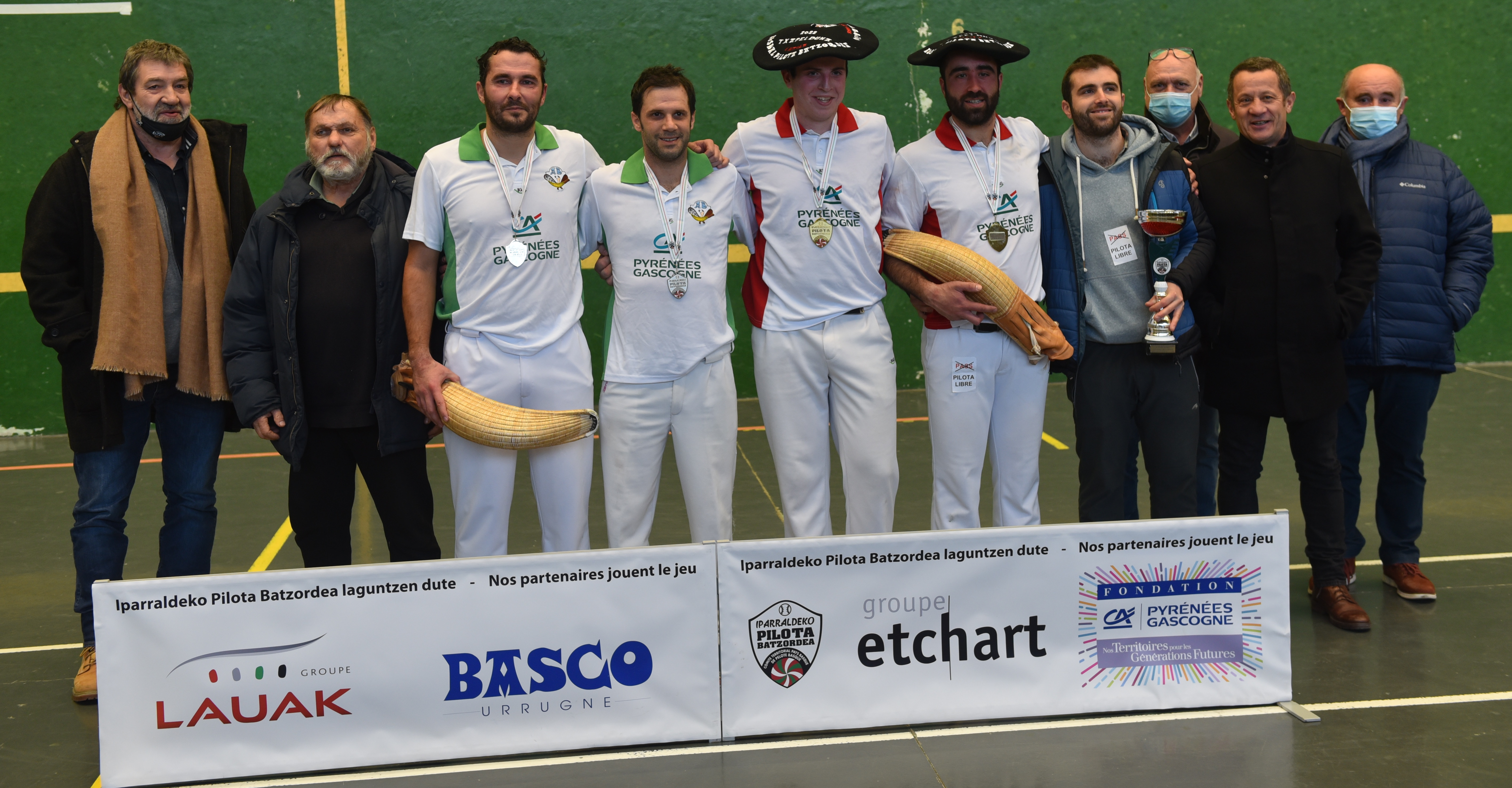 Samedi 22 janvier 2022, au mur-à-gauche de Cambo, notre équipe composée d’Eneko Sarratia (avant) et Fabien Villain (arrière) disputait la finale du Championnat du Comité Territorial Pays Basque à chistera joko garbi 1ère série, contre le club de la Zaharrer Segi de Baïgorry représenté par Bixente Izoco et Téo Riouspeyrous.