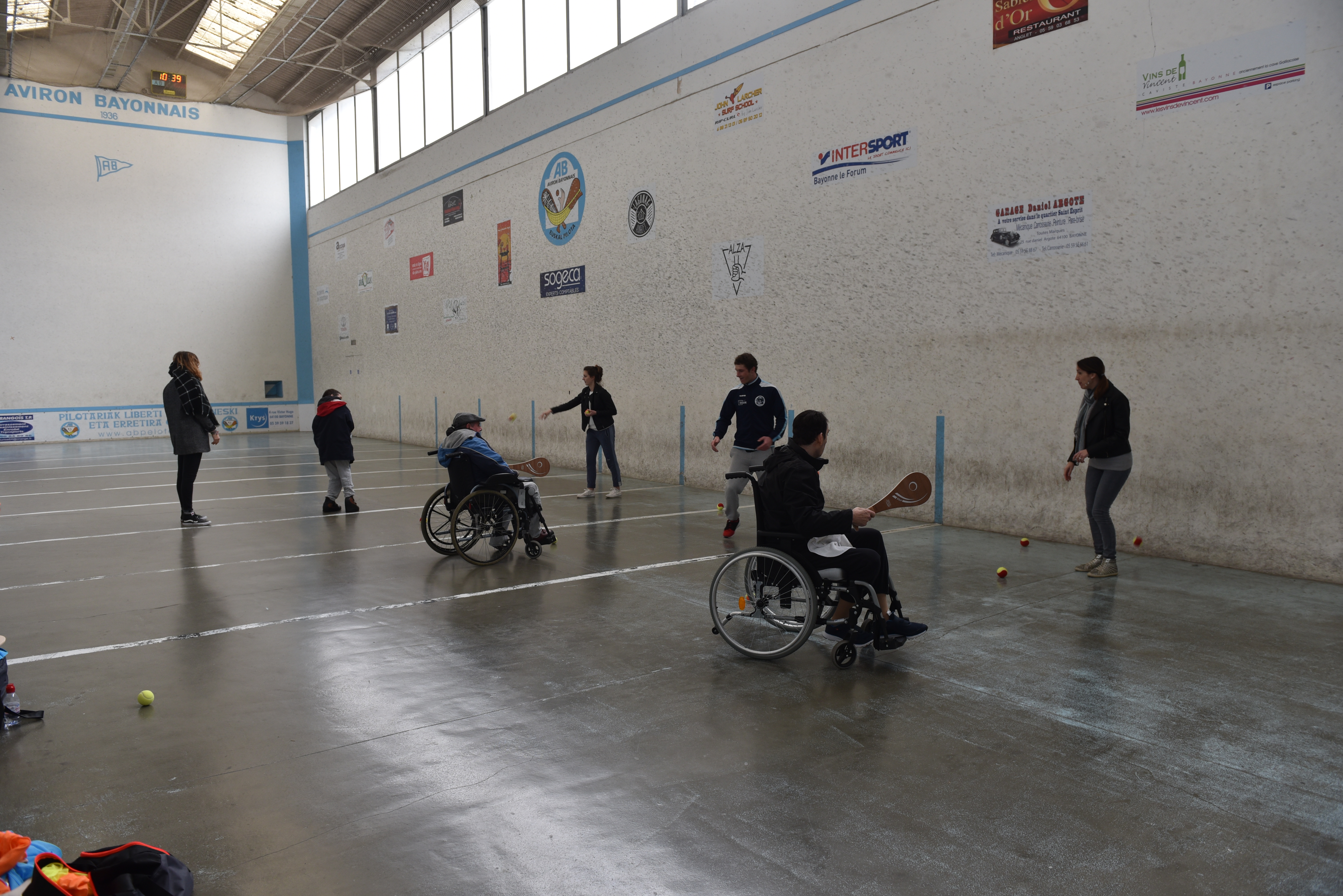 Dans son discours de bienvenue, le Président Alain Betbeder a rappelé la genèse du projet et l’attachement de notre Club à sa dimension sociale , sa mise en oeuvre par l’intermédiaire de la commission sport pour tous de notre Section, avec Charlotte Arramon psychologue coordinatrice et Guillaume Betbeder l’éducateur diplômé. Il a aussi remercié les généreux partenaires qui ont permis de proposer gratuitement l’activité. Les IME participants avaient répondu présents : nous avons pu assister à des démonstrations de jeunes pelotaris des centres Plan-Cousut (Biarritz) et Francesenia (Cambo), ainsi que des “individuels” en fauteuil. Un buffet a clôturé la matinée.